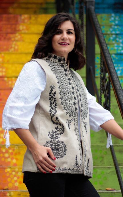 Prețul inițial a fost: 160 lei.110 leiPrețul curent este: 110 lei.Vesta tunică de femei cu motive tradiționale Gina