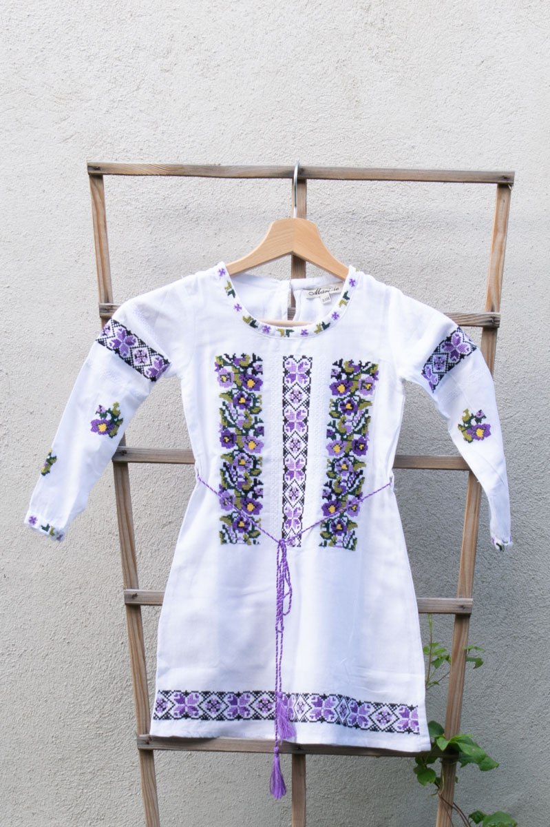 Rochie albă pentru fetițe cu broderie florală mov, perfectă pentru un look delicat și elegant. Confecționată din materiale ușoare și confortabile, rochița oferă libertate de mișcare și este ideală pentru evenimente speciale sau zilele de vară. Detaliile florale mov adaugă un contrast rafinat și un strop de culoare, transformând-o într-o piesă fermecătoare pentru micuțele prințese. O alegere deosebită pentru momente memorabile!