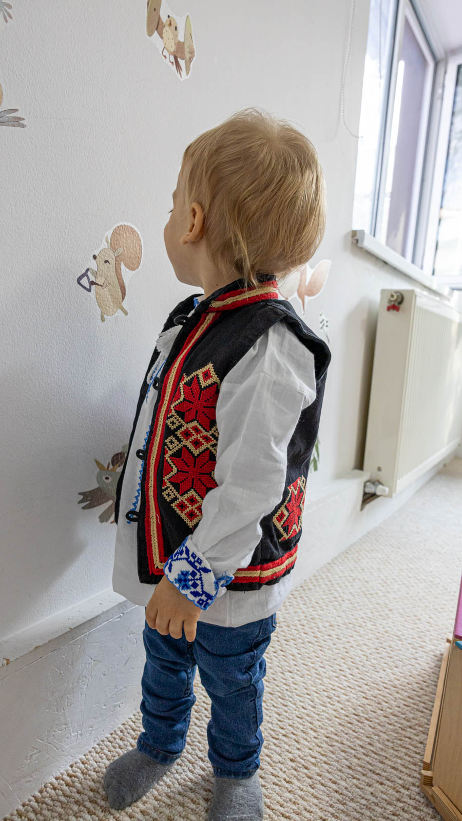 Vestă cu motive tradiţionale, brodată la maşină.