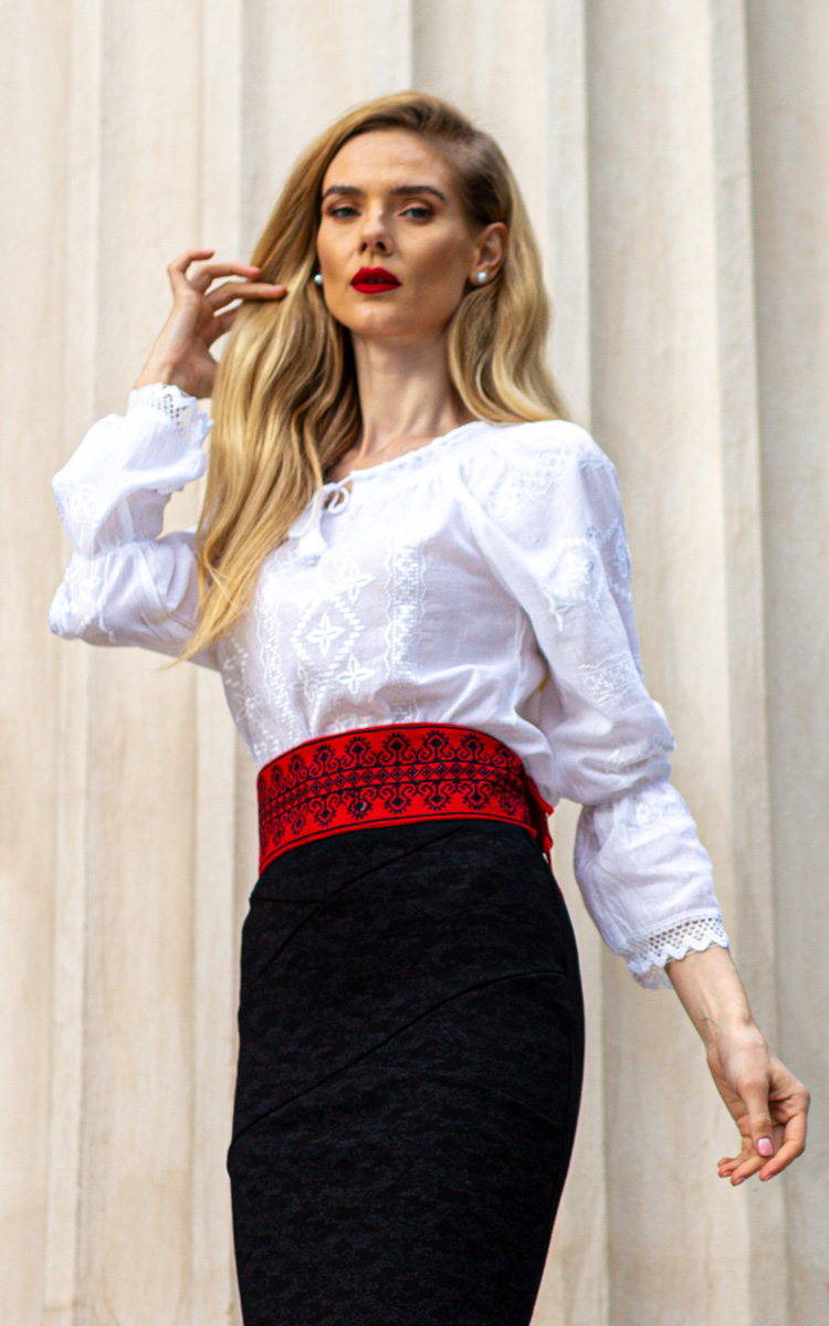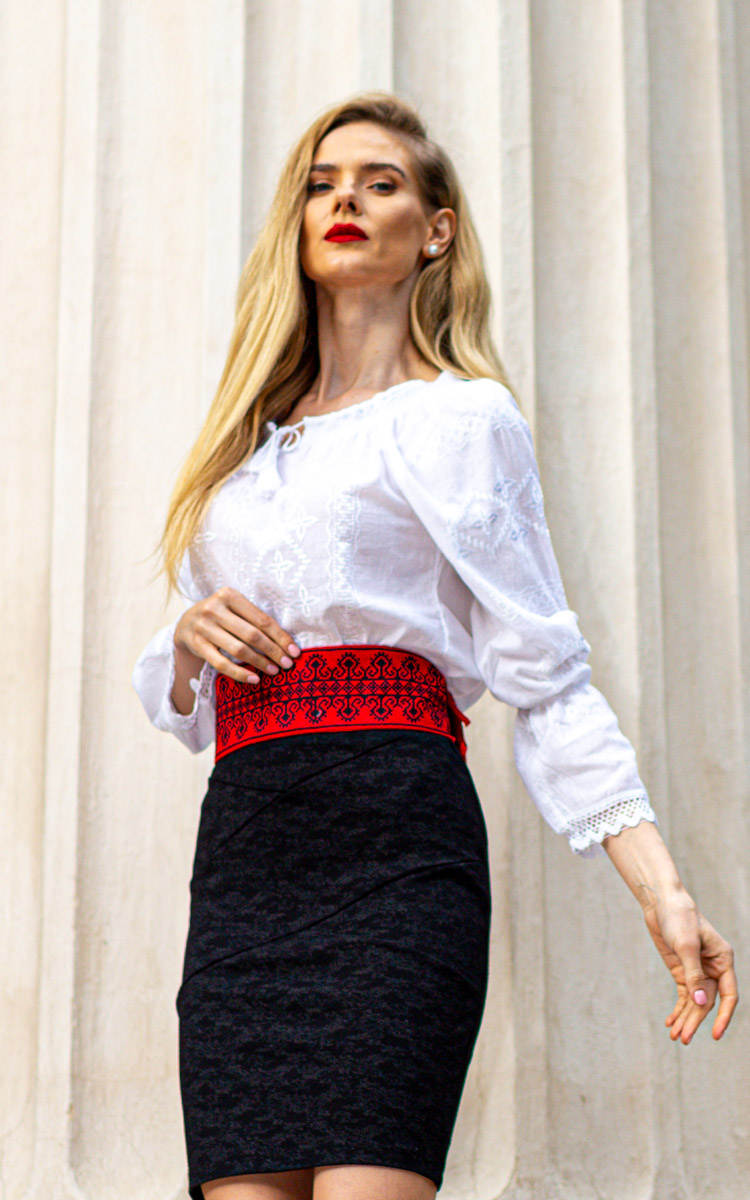Fustă de damă Meda broderie albă cu motive tradiționale