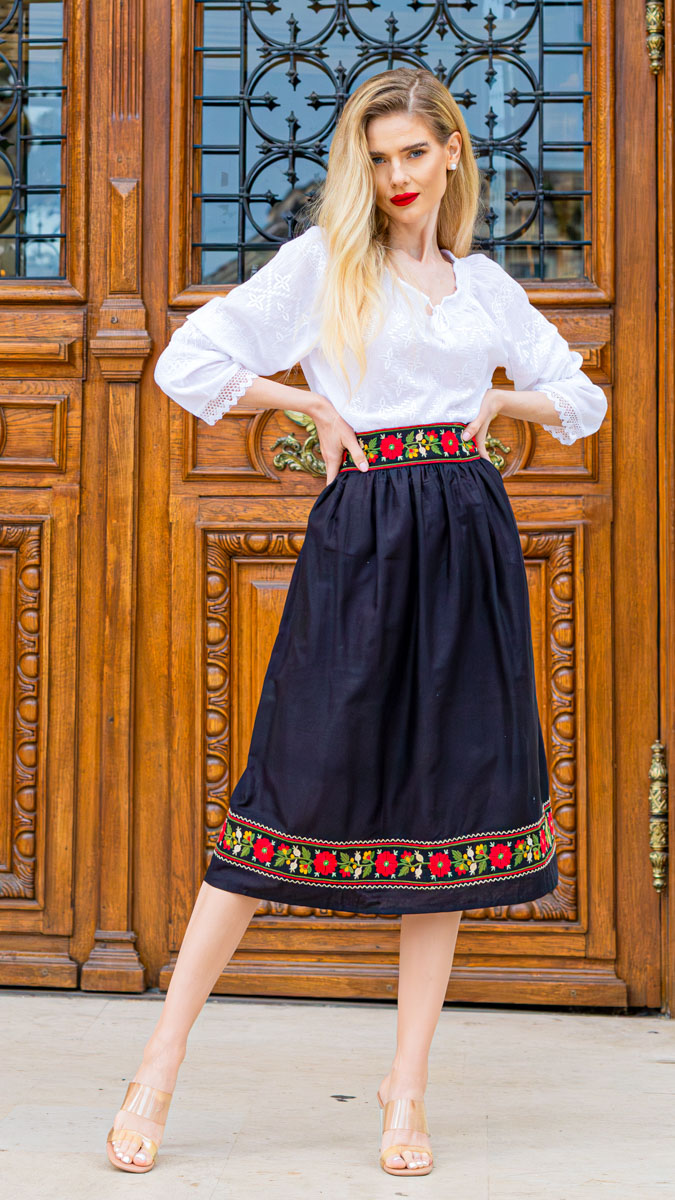 Fustă de damă Amalia bleumarin cu motive tradiționale