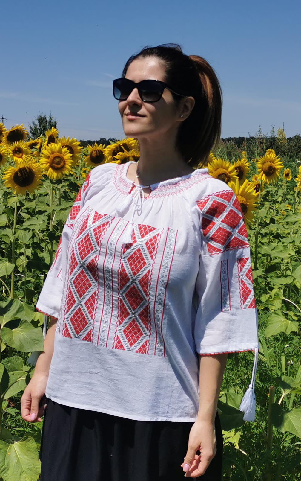 Ie cu motive tradiţionale, brodată la maşină