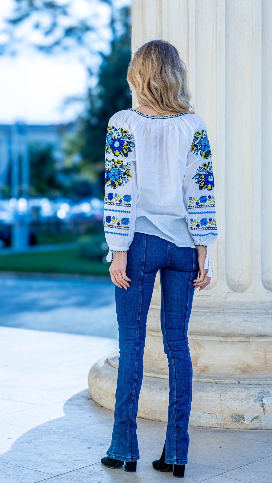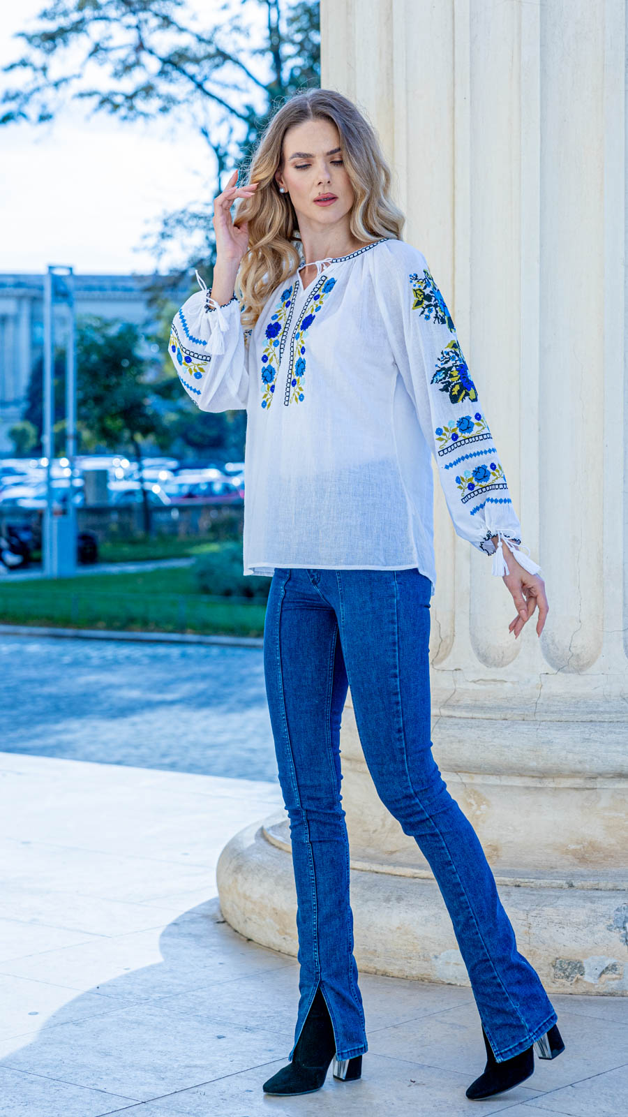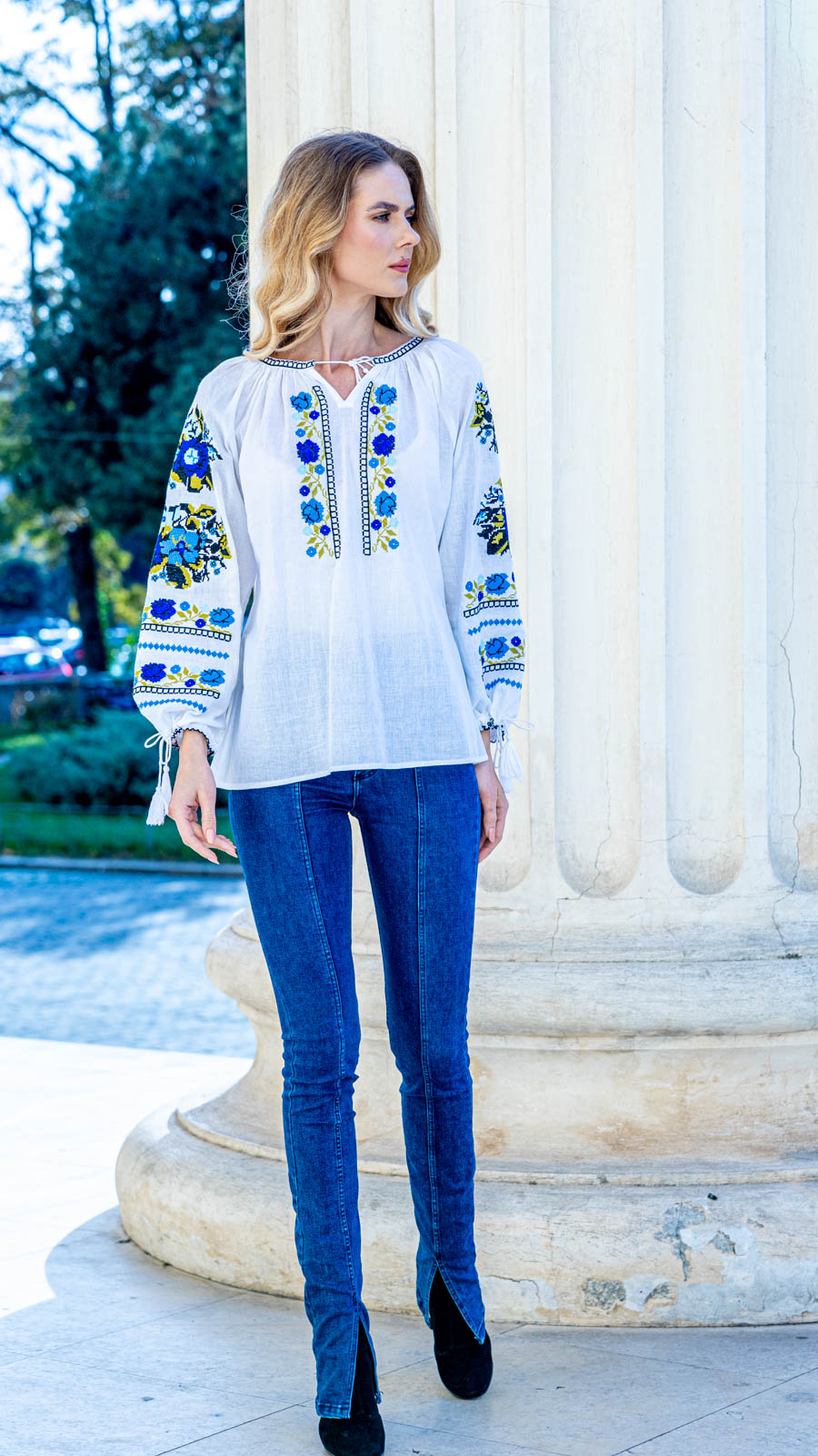 Ie cu motive tradiţionale, brodată la maşină
