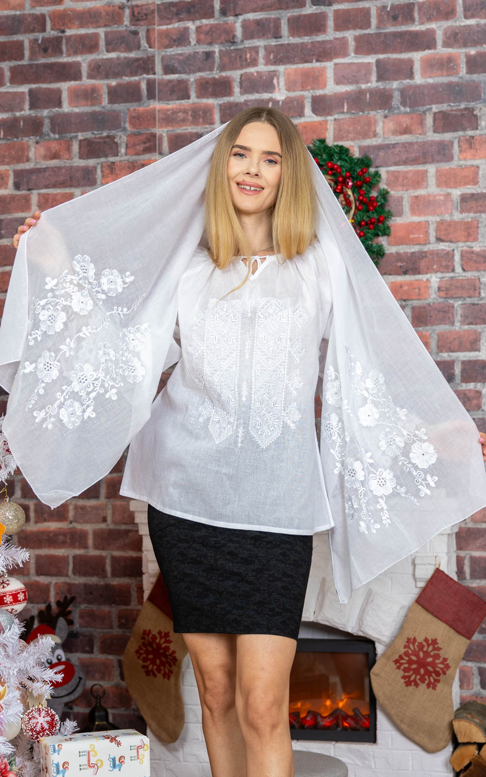 Eleganță și tradiție se împletesc perfect în această maramă albă cu broderie albă, o piesă deosebită ce adaugă un aer sofisticat oricărei ținute. Realizată cu finețe, broderia albă detaliată oferă un contrast regal și distins. Ideală pentru ocazii speciale sau pentru a-ți pune în valoare stilul autentic, această maramă este accesoriul perfect care va atrage toate privirile și va evidenția frumusețea tradiției.