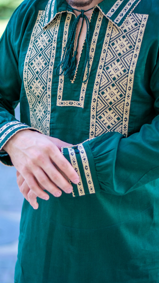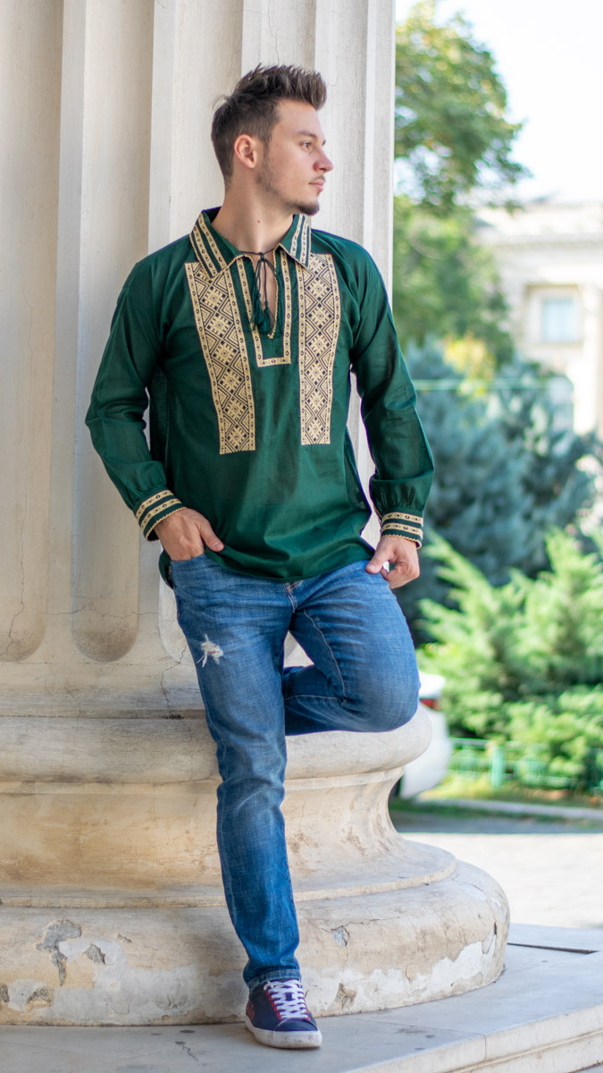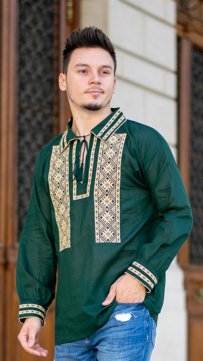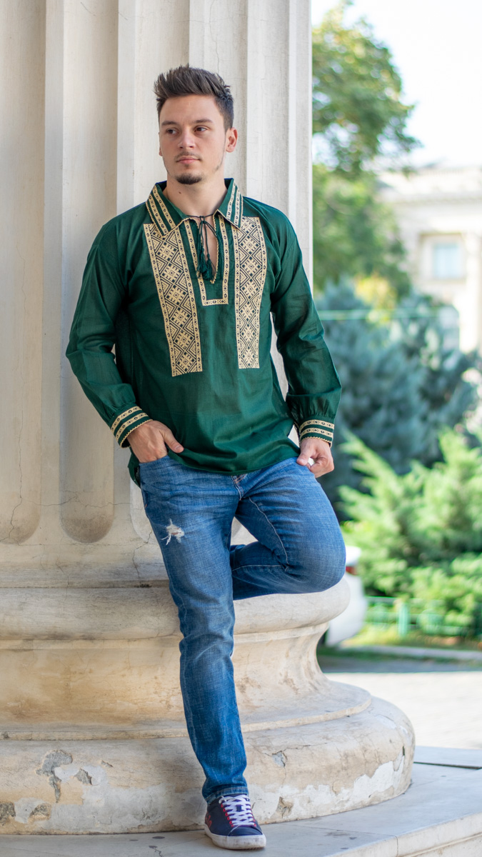 Ie bărbătească verde, cu broderie bej delicată, ce aduce un plus de stil și autenticitate. Designul său modern, inspirat din tradiția românească, combină nuanțele naturale pentru un look distinctiv și elegant. Fabricată din materiale confortabile, această ie este perfectă pentru evenimente speciale sau ținute casual cu personalitate. Poart-o cu încredere și evidențiază-ți stilul unic, plin de autenticitate și rafinament!