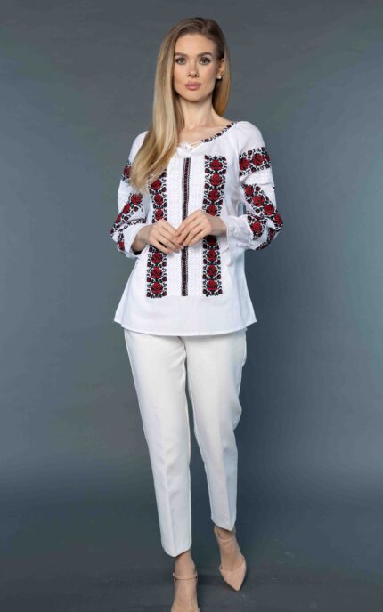 Fustă de damă Meda broderie albă cu motive tradiționale