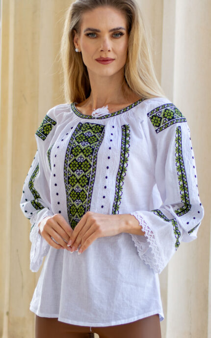 Prețul inițial a fost: 169 lei.119 leiPrețul curent este: 119 lei.Ia Lucia broderie verde cu bej