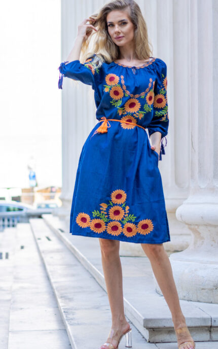 Rochia de damă brodată cu motive tradiționale Denisa
