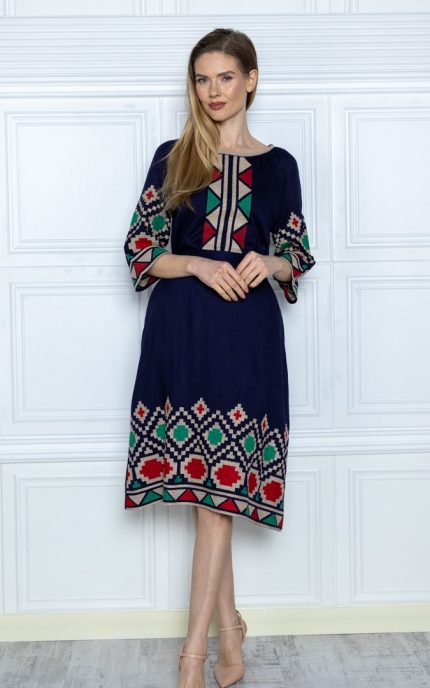 Prețul inițial a fost: 250 lei.170 leiPrețul curent este: 170 lei.Rochia Iasmina bleumarin