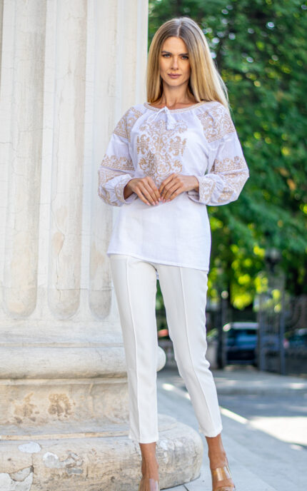 Prețul inițial a fost: 179 lei.119 leiPrețul curent este: 119 lei.Ie de damă Sabrina broderie verde cu auriu cu motive tradiționale