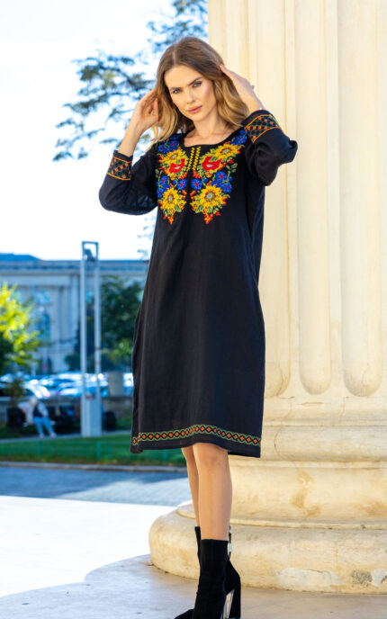 Prețul inițial a fost: 69 lei.45 leiPrețul curent este: 45 lei.Rochie de damă cu motive traditionale florale neagră Adina